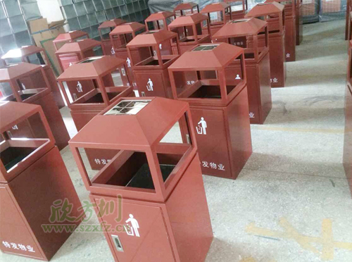 欣方圳個性化定制鋼制垃圾桶十分適用于房地產,首選F25環保垃圾桶的規格為310*310*810mm。F25環保垃圾桶桶身絲印“特發物業”字樣,特有的身份。環保垃圾桶顏色為咖啡色,咖啡色是一種永遠不會過時的流行時尚色彩,它是一種穩重而不失大氣的色彩!欣方圳鋼板沖孔環保垃圾桶采用優質冷軋鋼材料經剪鈑下料、折彎、沖壓、焊接、打磨、等工藝:表面經過除油、噴砂防銹處理后,再進行酸洗磷化處理;表面清理干燥后整體進行靜電噴涂或烤漆處理,靜電噴涂是經過流水線高溫固化爐固化后再出爐冷卻,加工后的塑粉附著力強,不易剝落;F25環保垃圾桶堅固耐用,色澤多樣化,不易破損,更適合學校,銀行,酒店,別墅等擺放。