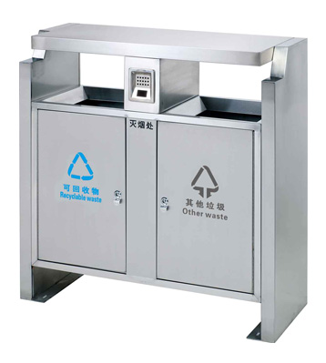 深圳新標準城中村街道社區不銹鋼五分類垃圾桶由有害垃圾、玻璃、金塑紙(為金屬、塑料、紙張的簡稱)、廚余垃圾、其他垃圾這5分類不銹鋼垃圾桶組合而成。其中金塑紙、其他垃圾日常產生量較大,所以分類收集容器也