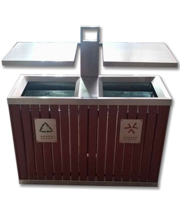 鋼木垃圾桶 鋼木選用防腐木、進口山樟木或塑木,經除蟲、防腐,烘干處理后加工成型。桶身框架冷軋鋼經酸洗磷化制作