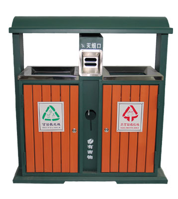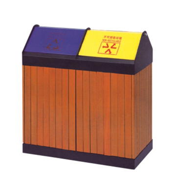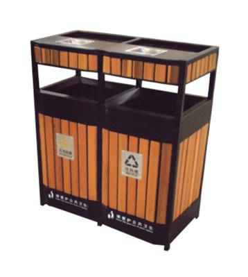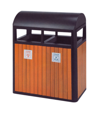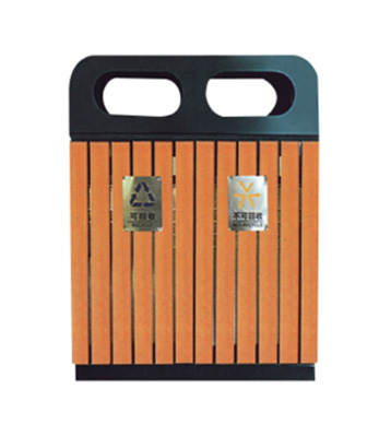 鋼木垃圾桶 鋼木選用防腐木、進口山樟木或塑木,經除蟲、防腐,烘干處理后加工成型。桶身框架冷軋鋼經酸洗磷化制作