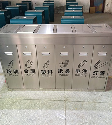 • 產品材質:多分類不銹鋼垃圾桶采用201#,202#,304#優質不銹鋼材料模壓成型,堅固耐用,不易破損;耐火安全,抗高低溫,適合各種惡劣氣候條件;金屬亮澤,高雅美觀,廣泛適用于各種場所;內外表面光潔,減少垃圾殘留,易于清潔;配置鍍鋅板內桶,便于垃圾清倒;
