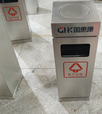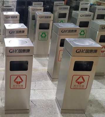 采用厚度1.0MM優質201不銹鋼板材制作,由專業師傅焊接焊點平滑美觀,表面打磨拋光防傷手,邊角圓弧設計防撞擊,絲印商場及垃圾分類標識。