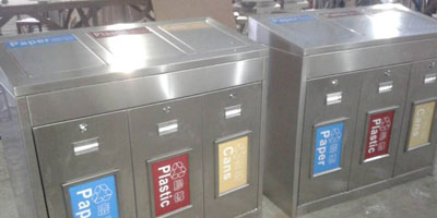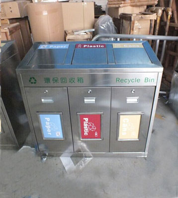 • 使用范圍:不銹鋼三分類垃圾回收箱表面光滑、亮麗,是電梯口、寫字樓、學校、物業、賓館、酒店、機場、汽車站等擺放的首選。