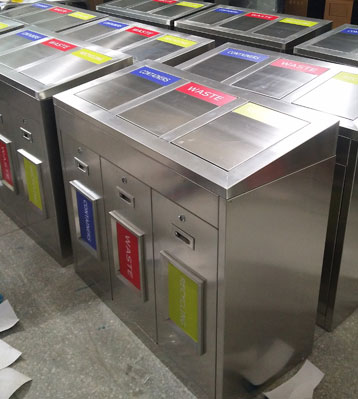 不銹鋼三分類垃圾回收箱工廠批量生產圖