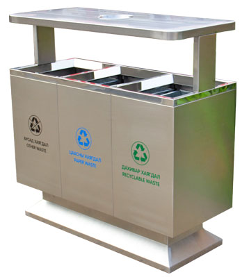 • 產品名稱:不銹鋼戶外三分類果皮箱