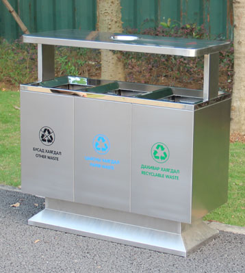 • 使用范圍:不銹鋼戶外三分類果皮箱表面光滑、亮麗,是電梯口、寫字樓、學校、物業、賓館、酒店、機場、汽車站等擺放的首選。