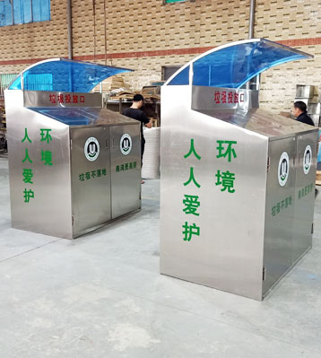 欣方圳大容量帶雨棚不銹鋼分類垃圾桶工廠批量生產(chǎn)圖