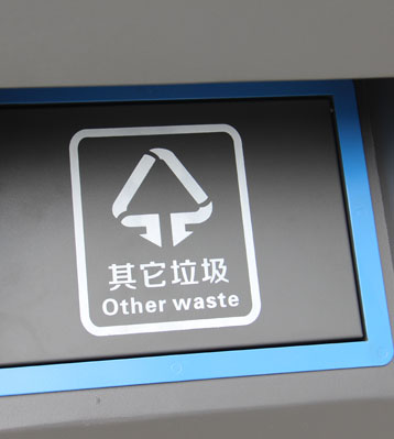 推蓋投口外觀設計凸顯科技感,合理利用空間在可回收物和其他垃圾中間設計有害垃圾投口,投口邊框分色烤漆門板絲印垃圾分類標有助于從源頭規范垃圾分類投放。