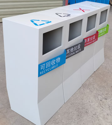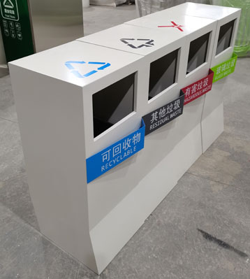 欣方圳不銹鋼四分類(lèi)果皮箱組裝擺放圖