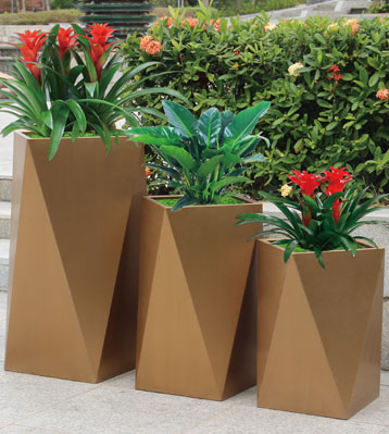 • 使用范圍:不銹鋼電鍍切面組合景觀花盆擺放商業街、城市廣場、小區、旅游景點、公園、商業廣場、海灘、高爾夫球場、地產園林、庭院、售樓部門前、別墅花園、小區泳池岸、私家花園、度假酒店等場所,不同款式不銹鋼金屬花盆,具有光滑亮麗、高檔美觀、堅固耐用等特點,融入室內外景觀環境配成一條自然的風景線。不僅具有綠化裝飾的功能上還能凈化空氣,感受自然懷抱,呼吸新鮮空氣、享受悠閑生活。