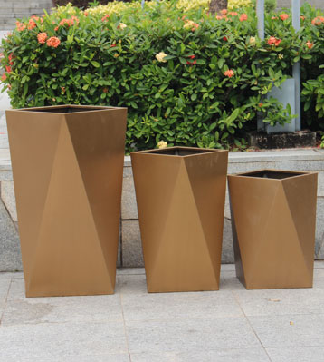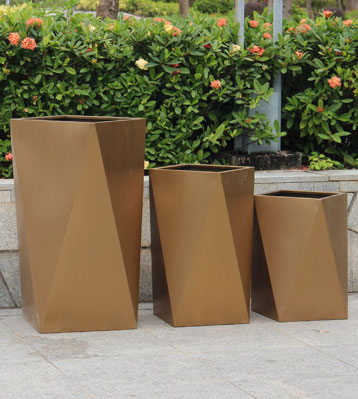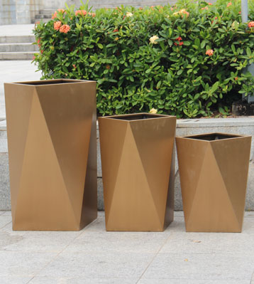• 產品材質:不銹鋼電鍍切面組合景觀花盆可采用5mm加厚201#/202#/304#不銹鋼材料模壓或焊接成型,金屬亮澤,內外表面光潔,易于清潔,表面可做電鍍壓紋、水鍍、蝕刻、納米鎳、無氰堿性光亮鍍銅工藝效果,無指紋處理高檔大氣;