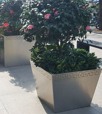 • 使用范圍:不銹鋼方錐形大花箱擺放商業街、城市廣場、小區、旅游景點、公園、商業廣場、海灘、高爾夫球場、地產園林、庭院、售樓部門前、別墅花園、小區泳池岸、私家花園、度假酒店等場所,不同款式不銹鋼金屬花盆,具有光滑亮麗、高檔美觀、堅固耐用等特點,融入室內外景觀環境配成一條自然的風景線。不僅具有綠化裝飾的功能上還能凈化空氣,感受自然懷抱,呼吸新鮮空氣、享受悠閑生活。