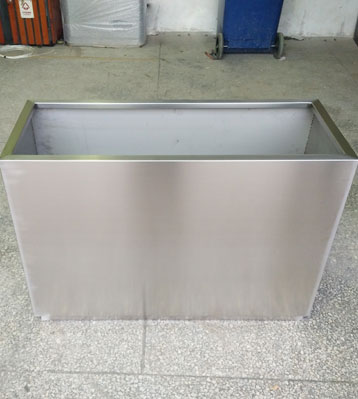 • 產品材質:不銹鋼長方形花箱可采用5mm加厚201#/202#/304#不銹鋼材料模壓或焊接成型,金屬亮澤,內外表面光潔,易于清潔,表面可做電鍍壓紋、水鍍、蝕刻、納米鎳、無氰堿性光亮鍍銅工藝效果,無指紋處理高檔大氣;