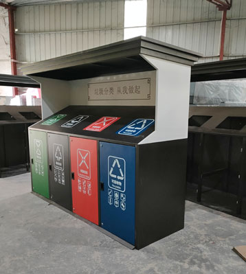 • 產品材質:城市花園小區大容量分類垃圾桶定點投放垃圾屋房站點整體尺寸制作需求可按地方標準要求定制,常用的制作材質有鍍鋅板、不銹鋼、戶外塑粉靜電噴涂,其工藝特點表現為較高的戶外適應性,表面涂層堅固,不易脫落,抗紫外線以及耐候性強。可回收物投口為藍色,其他垃圾為淺灰色,廚余垃圾綠色,有害垃圾為紅色,顏色搭配美觀,可配套洗手盆投放后清洗。.表面無毛刺、無披鋒,棱角和邊緣做圓角處理.
