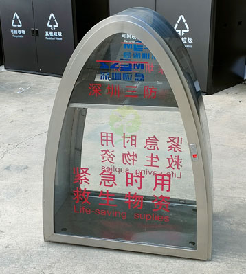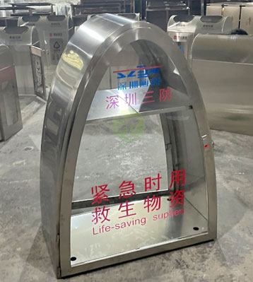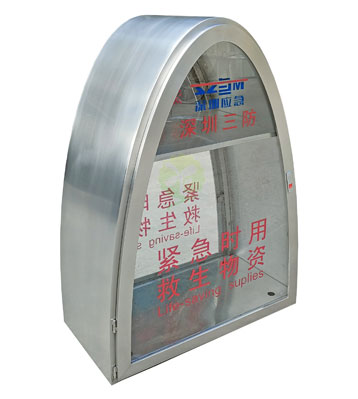 深圳應(yīng)急、深圳三防水域邊防汛應(yīng)急救援物資柜,采用304啞光拉絲加厚不銹鋼材質(zhì)焊接成型,5MM鋼化玻璃柜門,按跳門鎖開啟設(shè)計(jì)。