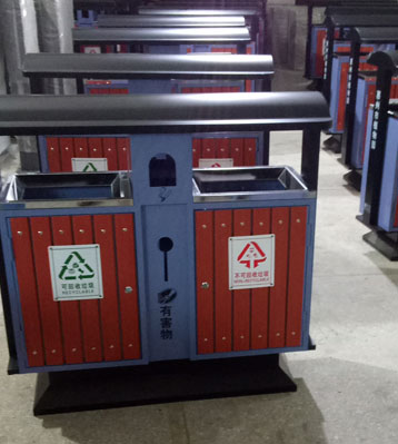 戶外鋼木分類垃圾桶廠家生產圖