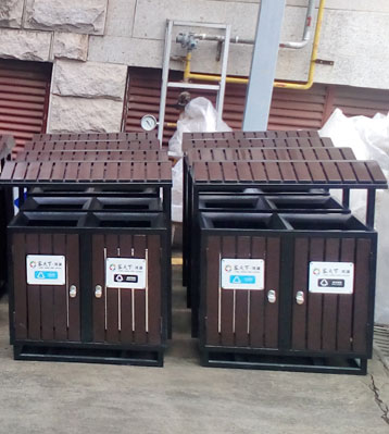 • 產品材質:屋形鋼木分類垃圾桶定制可選進口實木(防腐木.紅胡桃.山樟木等)、鋼結構、塑木等。