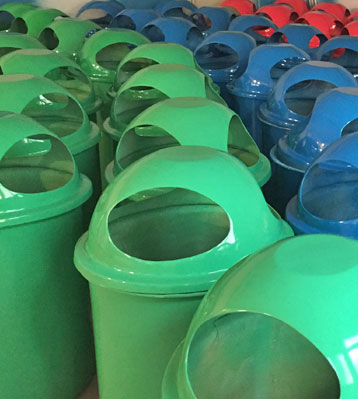 多投口玻璃鋼圓形垃圾桶桶身和內(nèi)膽部分,采用高級(jí)玻璃鋼材質(zhì)一次成型,經(jīng)過打磨、除塵 、噴漆等一系列后期工藝然后出成品。
