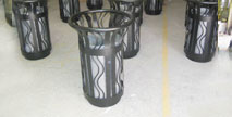 • 產品材質:欣方圳鋼制花籃垃圾桶采用優質冷軋鋼材料經剪鈑下料、折彎、沖壓、焊接、打磨、等工藝:表面經過除油、噴砂防銹處理后,再進行酸洗磷化處理;表面清理干燥后整體進行靜電噴涂或烤漆處理,靜電噴涂是經過流水線高溫固化爐固化后再出爐冷卻,加工后的塑粉附著力強,不易剝落;